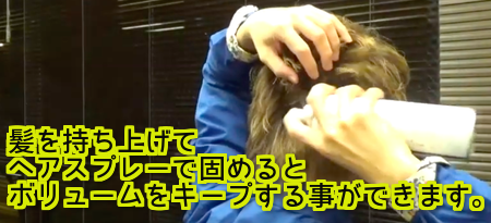 後頭部のボリュームを維持するためにヘアスプレー